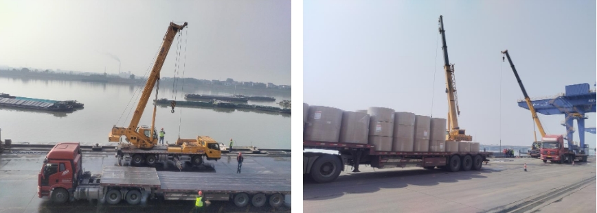 近日,765卷成品紙順利裝卸至浙江攀峰環(huán)保科技有限公司倉庫內(nèi),從響水港區(qū)5#泊位到浙江龍游港區(qū)再到客戶倉庫,歷時(shí)二十多天,克服天氣、機(jī)具調(diào)整等重重困難,響水港區(qū)物流公司首次成品紙一站式全過程物流業(yè)務(wù)圓滿完成。
