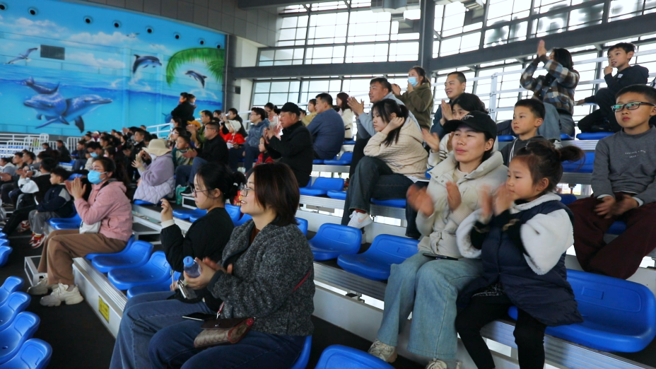 海洋世界劇場的海豚小明星,不僅可愛還身懷絕技,走起路來搖搖擺擺,聰明的海豚們在馴獸師的引導下,完成了一個個高難度的動作,贏得了在場觀眾的陣陣掌聲。