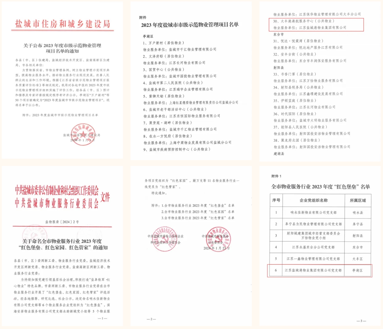 日前,市住建局公布關于2023年度市級示范物業管理項目名單,鹽城港物業集團在管項目——大豐港港航服務中心(公共物業)被評為“2023年度鹽城市市級示范物業管理項目”;鹽城港物業集團黨支部被評為全市物業服務行業2023年度“紅色堡壘”。