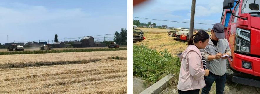 從收割—過磅—烘干,各部門配合生產(chǎn)調(diào)度,全力參與“三夏”大忙,形成“田頭、場頭、倉頭”三位一體的工作機制。農(nóng)技工作人員深入田間地頭,全面摸排登記農(nóng)田實際情況,時刻關(guān)注轄區(qū)雨情,研判各地塊成熟時間,按照“成熟一片,收割一片”的原則,第一時間組織聯(lián)合收割機及時入場,確保按期完成收割任務(wù);加工中心的6條種子烘干線馬力全開,做到人歇機不歇,24小時晝夜不停搶烘收割回來的麥子,確保達到標準水分,安全入庫歸倉。
