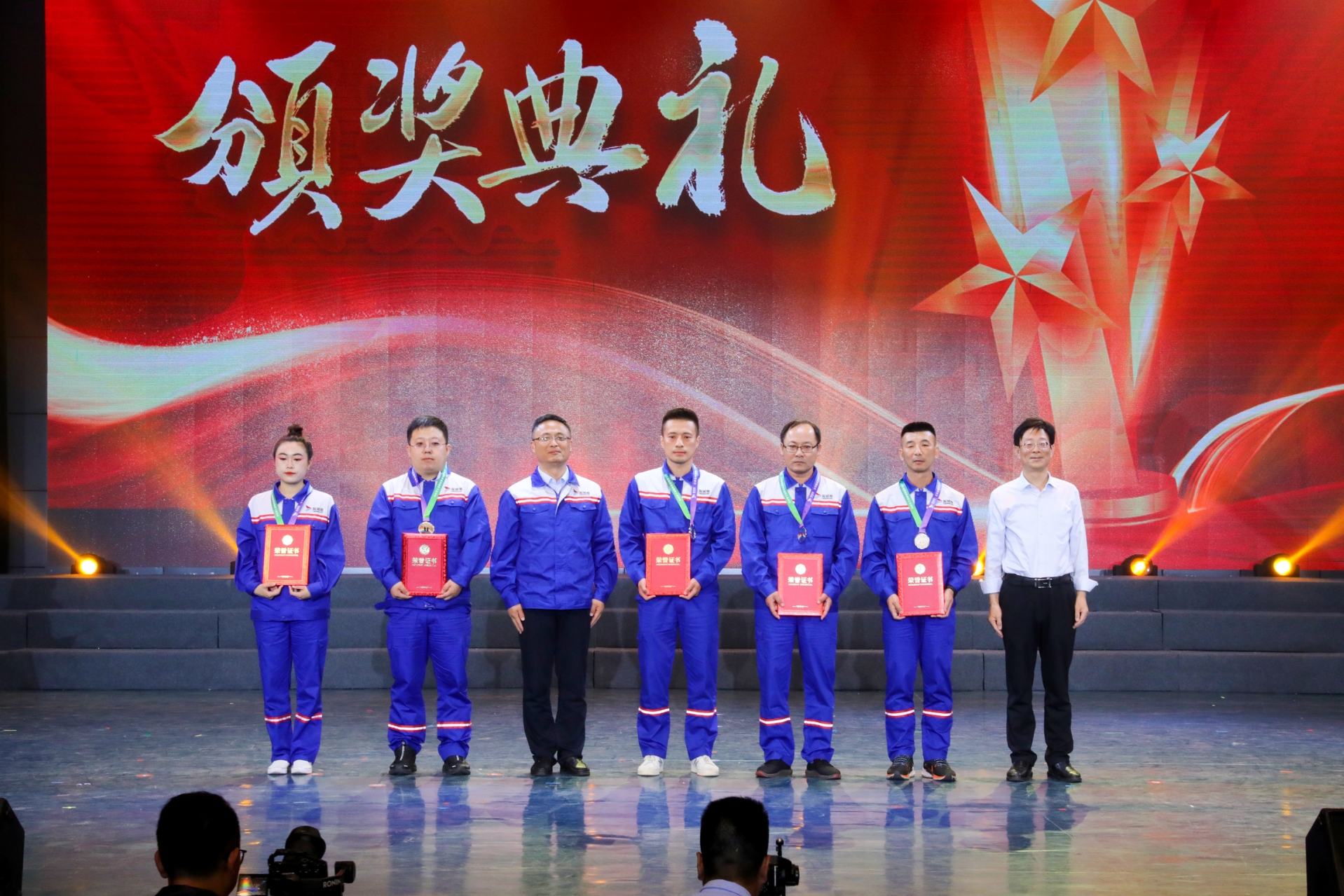 活動中,集團領導班子為第四屆職工運動會和文化藝術節獲獎單位代表進行了頒獎,現場還集中觀看了集團三年(2021-2023)“五新港口”建設工作匯報片和四周年工作匯報片。