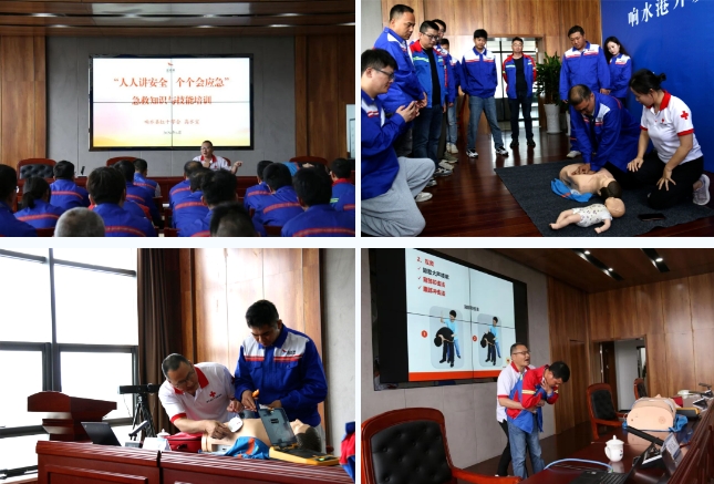 為進一步保障全體職工生命健康安全,更好地應對工作和日常生活中的突發情況,響水港區邀請縣紅十字會工作人員,為全體職工開展應急救護培訓。培訓通過圖文演示,結合真實案例,帶領大家系統學習了人工呼吸、人工胸外按壓、AED自動體外除顫儀、傷員搬運要點以及海姆立克急救法等核心急救知識。現場實操環節,培訓老師借助急救人體模型,詳細演示了心肺復蘇術的操作步驟,參訓人員在培訓老師的一對一指導下嚴格遵守動作要領,步驟準確、操作規范,達到最好的培訓效果。