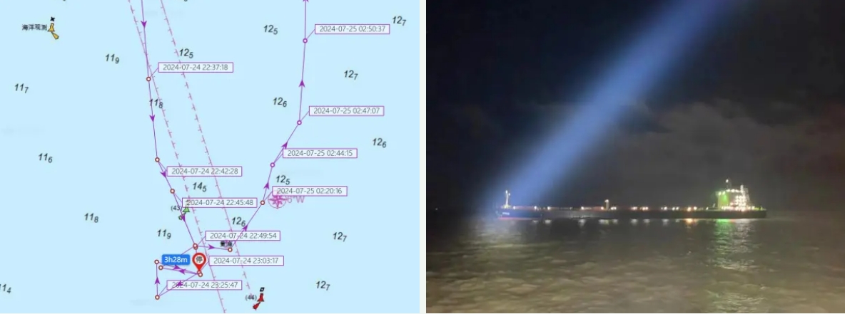 7月24日,伊朗籍貨船“阿凡達”輪(英文船名:ARTAVAND),船長224.97米、船寬32.25米,吃水12.90米,滿載61909.617噸硫磺,在航行至大豐港區航道43號浮附近受困,船舶被迫拋錨,隨時有擱淺風險,情況危急。