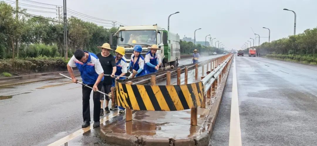 在港區的道路上,隊員們頂著烈日,清理著道路護欄和雜物垃圾。他們用“嚴真細實快”的工作作風,時刻維護著港容港貌的“高顏值”。