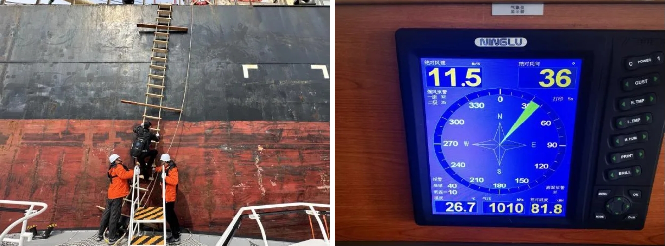 在陣風(fēng)7級(jí)的影響下,引航員艱難地攀爬引航梯登上了引航船舶,通過對(duì)現(xiàn)場(chǎng)水文天氣環(huán)境的觀察,結(jié)合自身經(jīng)驗(yàn),抓住陣風(fēng)窗口期,開啟船用雷達(dá),實(shí)時(shí)監(jiān)測(cè)航道有無礙航物及過往船只,并要求船方備妥雙錨和主機(jī),以應(yīng)對(duì)潛在安全風(fēng)險(xiǎn),引航員不斷在船舷和駕駛室內(nèi)來回跑動(dòng)觀察,加強(qiáng)瞭望,及時(shí)利用高頻與海事部門、拖輪以及碼頭人員進(jìn)行溝通聯(lián)系,安全地完成了本次引航靠泊任務(wù)。