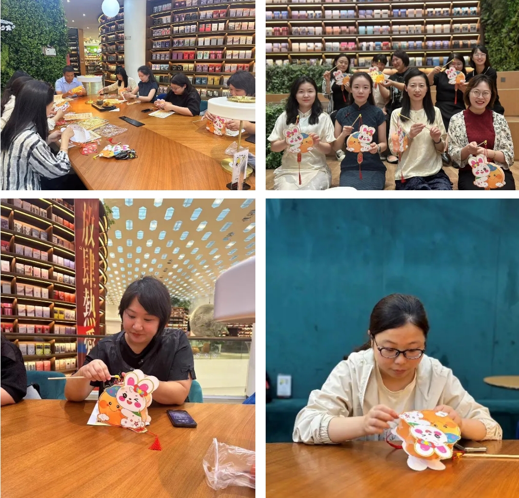 系上流蘇繩,穿上燈帶,扣入玉兔,大家認(rèn)真制作著屬于自己的花燈,一個(gè)個(gè)俏皮可愛(ài)的古風(fēng)燈籠就制作成型了。制作玉兔花燈環(huán)節(jié)讓組員們親自動(dòng)手體驗(yàn)了文化遺產(chǎn)的魅力,不僅展示了組員們的創(chuàng)造力,也體現(xiàn)了對(duì)傳統(tǒng)文化的傳承與尊重。燈籠制作完成后,所有參與人員在花燈的映照下合影留念,留下了這個(gè)溫馨時(shí)刻的美好記憶。