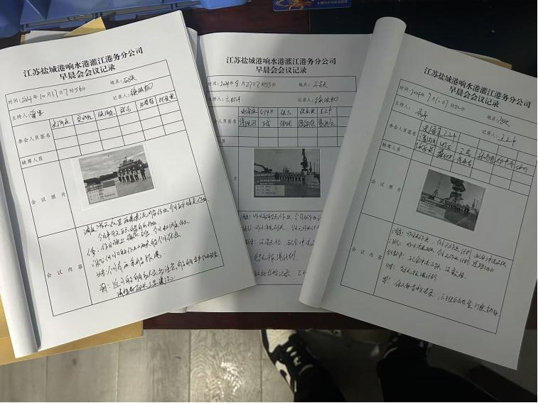 晨會學習內容、交接班會事項、安全生產關鍵點、作業流程細節點......把當天的工作重點記錄在筆記本上,為開展好一天的工作打好基礎。反復推敲筆記內容,不斷汲取經驗,練就過硬技術本領。每日一更新,每日一鞏固,面對朝陽升起,我們每日相約,共同記錄,在嚴謹負責的態度里,在船舶激浪的工作中,爭做港口奮楫者,為強港之夢勇步向前。