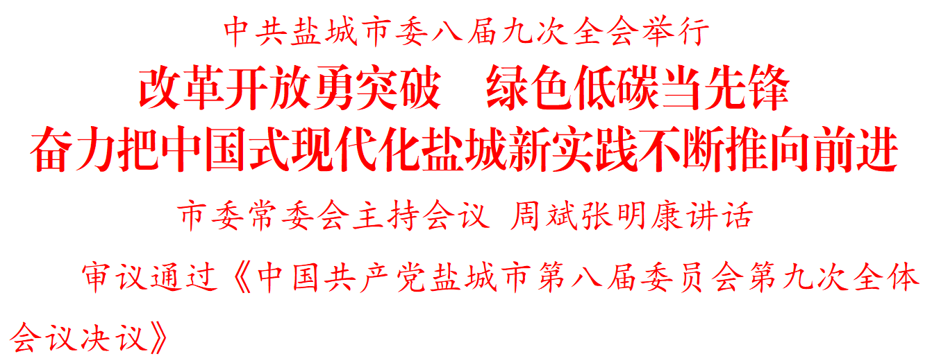 12月29日,中國(guó)共產(chǎn)黨鹽城市第八屆委員會(huì)第九次全體會(huì)議舉行。全會(huì)堅(jiān)持以習(xí)近平新時(shí)代中國(guó)特色社會(huì)主義思想為指導(dǎo),深入貫徹落實(shí)黨的二十屆三中全會(huì)、中央經(jīng)濟(jì)工作會(huì)議和省委十四屆八次全會(huì)、省委經(jīng)濟(jì)工作會(huì)議精神,總結(jié)今年工作,部署明年任務(wù),動(dòng)員全市上下進(jìn)一步全面深化改革開(kāi)放,堅(jiān)定不移推動(dòng)綠色低碳發(fā)展,高質(zhì)量完成“十四五”規(guī)劃目標(biāo)任務(wù),奮力把中國(guó)式現(xiàn)代化鹽城新實(shí)踐不斷推向前進(jìn)。