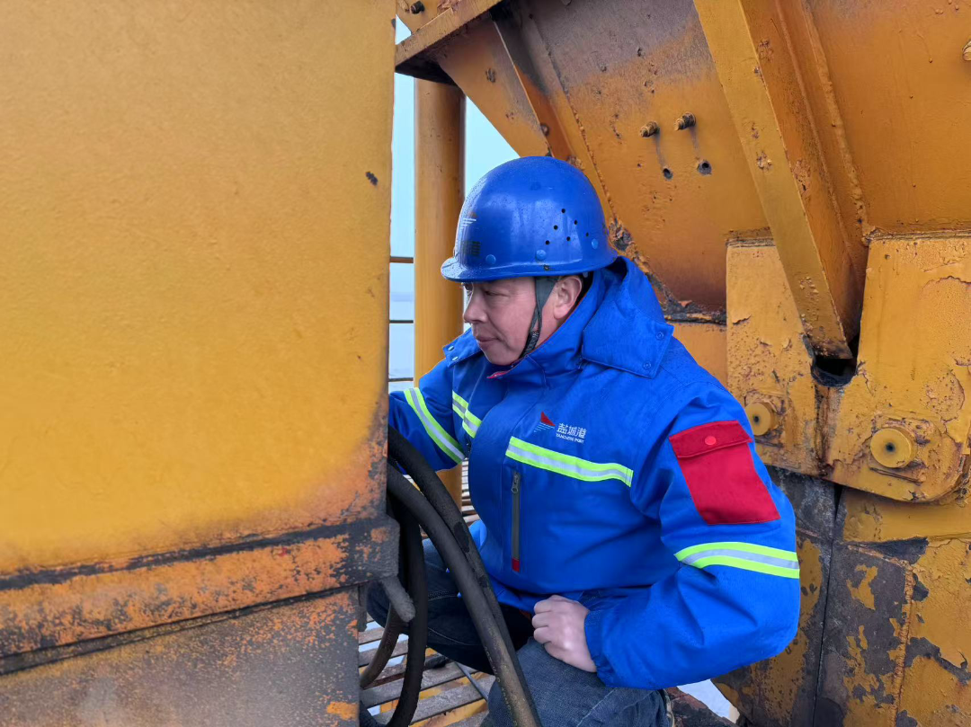 科技集團港機公司的技術運維部孫書林,舍小家為大家,寒風雖冷,但心是熱的。他巧用扳手等工具,細心檢查大車行走限位,及時排除故障,用實際行動默默守護節日期間的設備運轉,為港口運營增添動能。
