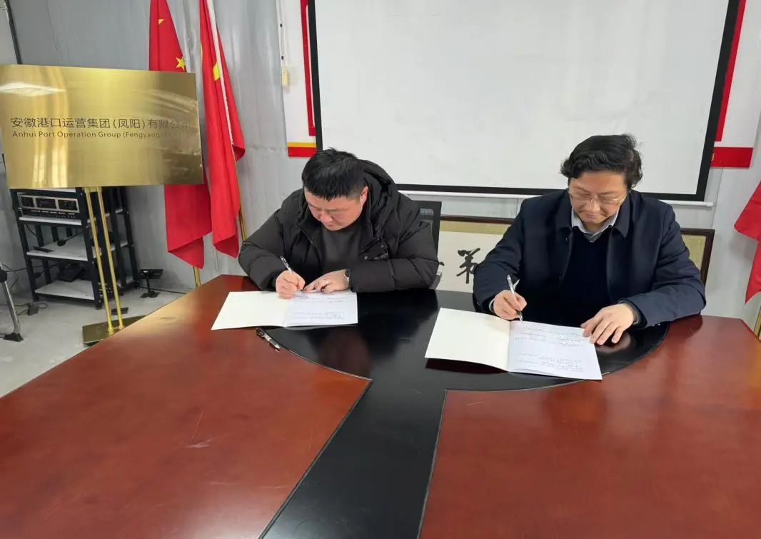 2月26日,鹽城港陸港集團駐鳳陽辦事處揭牌儀式在安徽鳳陽港隆重舉行,并與安徽港口運營集團(鳳陽)有限公司正式簽署戰略合作協議。安徽鳳陽港董事長王貴磊、總經理吉咸飛,陸港集團相關負責人、集團陸港事業部相關負責同志等出席儀式。