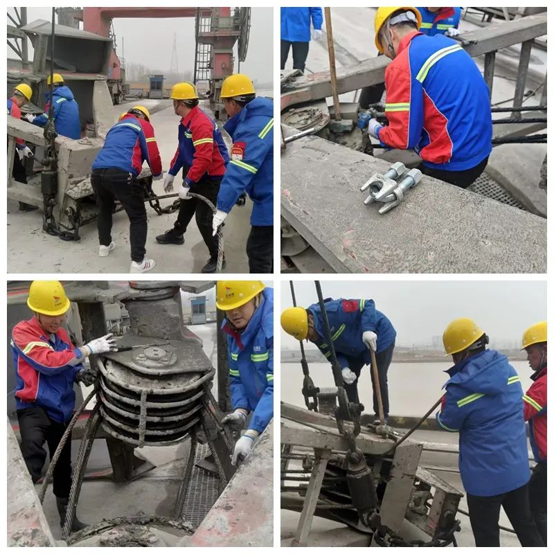 門機是港口裝卸作業(yè)的“主力軍”,而鋼絲繩作為關鍵部件,其安全性直接關聯(lián)作業(yè)效率。一季度,港區(qū)設備保障團隊利用生產(chǎn)間隙,對港區(qū)1#門機的鋼絲繩開展更換。面對時間緊、任務重的挑戰(zhàn),團隊創(chuàng)新采用“分段式拆裝+滑輪組輔助”工藝,成功將單臺設備更換時間壓縮20%,并同步完成潤滑保養(yǎng)和隱患排查工作。設備組組長邱師傅介紹:“我們提前模擬操作流程,細化每個環(huán)節(jié),抓住門機使用空檔期,確保‘換繩不停產(chǎn)’。”更換后,門機故障率下降20%,裝卸效率提升10%,為沖刺生產(chǎn)目標提供了堅實保障