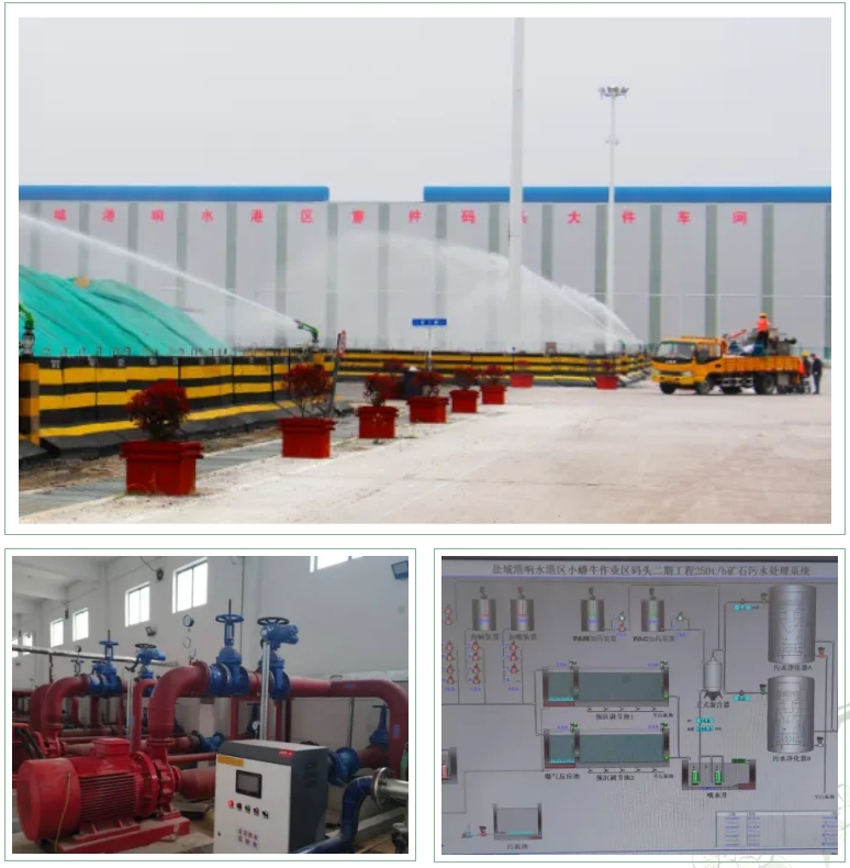 創(chuàng)新引入“分質(zhì)水循環(huán)+負(fù)碳工藝”概念:利用現(xiàn)有“三站”與湖水打通引湖造景的同時(shí),利用湖水曝氣作用實(shí)現(xiàn)生態(tài)無(wú)害化處理生成“再生水”,用于綠化澆灌與堆場(chǎng)噴淋,年預(yù)計(jì)減少堆場(chǎng)污水超數(shù)十萬(wàn)噸、節(jié)約市政用水成本45%、驅(qū)動(dòng)生產(chǎn)單元降耗17%、碳強(qiáng)度下降23%,實(shí)現(xiàn)“三水”閉環(huán)的綠色發(fā)展模式,同時(shí)汛期可以有效降低85%的內(nèi)澇風(fēng)險(xiǎn)。后續(xù)聯(lián)動(dòng)現(xiàn)有堆場(chǎng)噴淋和粉塵監(jiān)測(cè)系統(tǒng),根據(jù)風(fēng)、塵信息實(shí)時(shí)調(diào)控,既降塵抑污,又提升作業(yè)環(huán)境質(zhì)量,實(shí)現(xiàn)水資源高效循環(huán)利用,形成可復(fù)制的綠色生態(tài)發(fā)展新模式。