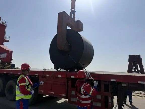 針對鋼卷裝卸特性,港區(qū)優(yōu)化全流程跟蹤服務模式。科學規(guī)劃裝卸方案,實現(xiàn)門機與運輸車輛的高效協(xié)同;同步建立“貨主-船方-作業(yè)團隊”三方聯(lián)動機制,通過專屬聯(lián)絡群實時溝通對接需求,形成無縫銜接的作業(yè)鏈條。
