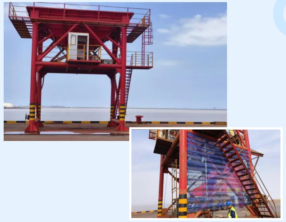 成果展示:該平臺結構簡單實用,通過循環水系統對進出港口的運輸車輛進行全方位沖洗,確保車輛干凈整潔,進一步提升運輸全程的環保水平,減少車輛帶泥上路和揚塵污染。自制洗車平臺投入使用后,不僅節省了采購成本,而且減少了50%的道路打掃頻次,極大地降低了人力成本。