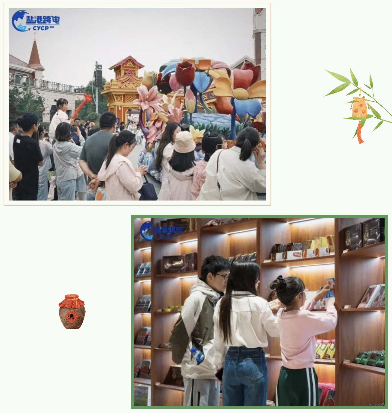 在鹽城寶龍店與射陽趣伏里店的顯著區域,特別設置的端午節主題互動區,成為了節日期間的歡樂焦點。活動期間,顧客參與了一系列精心設計的傳統趣味游戲。“射五毒挑戰”、“滾瓶子贏好禮”等環節通過精準投擲納福,滾動特制瓶子,讓顧客親身體驗傳統端午節的富有童趣的習俗魅力并贏取了包括品牌試用裝、零食飲料以及端午特色小禮品在內的豐厚獎品。