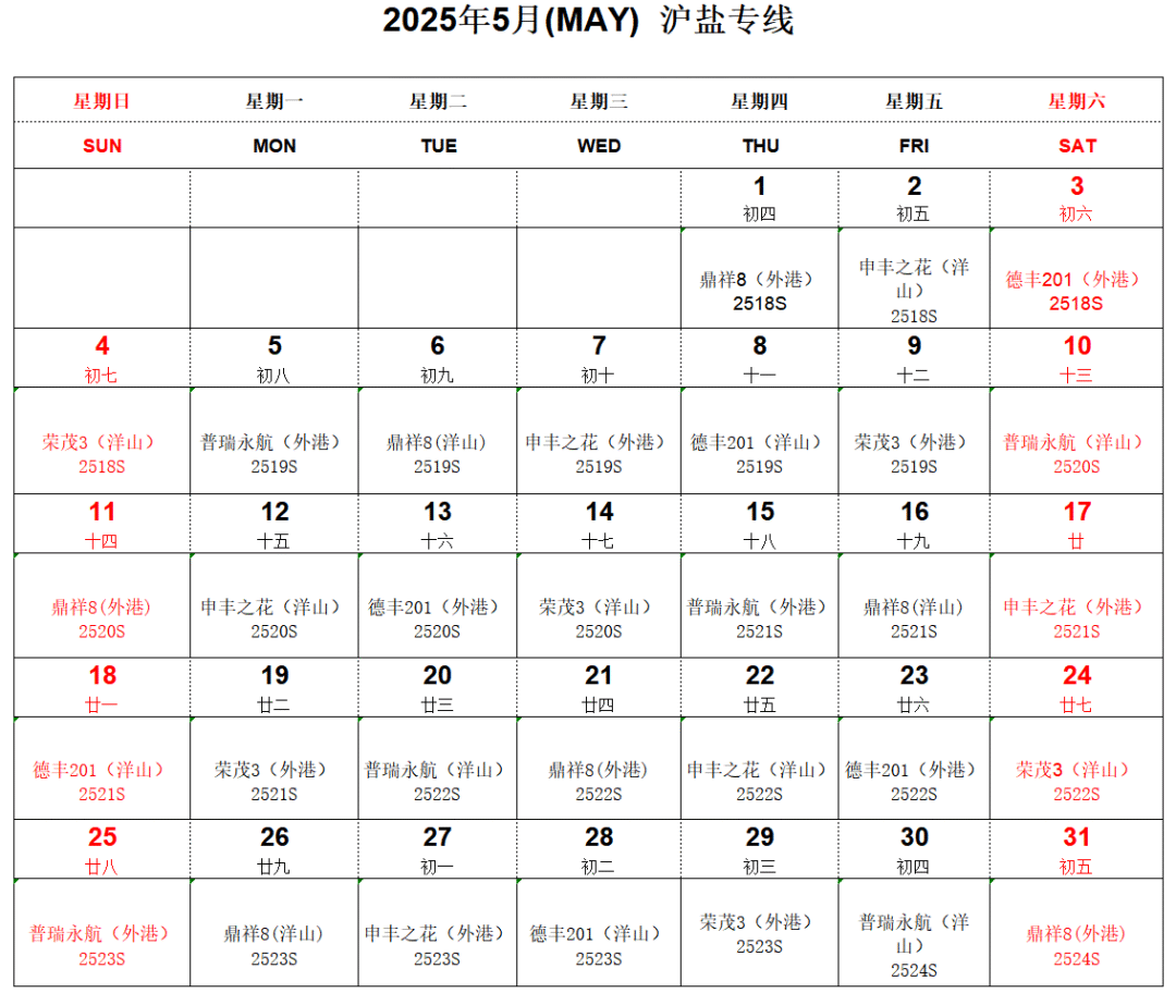 剛剛過去的五月,在實際可作業時間為21.5天的嚴峻挑戰下,江蘇滬豐集裝箱物流有限公司憑借卓越的高效運營實力,在航運集團的統籌協調下,5月完成27個航次運輸任務,其中“滬鹽專線”23個航次,“鹽連支線”4個航次,“滬鹽”專線的23航次也是自滬豐公司成立以來的歷史新高,真正意義實現天天班服務,優質高效的服務獲得了客戶的一致好評,這充分彰顯了滬豐公司在特殊工況時所具備的強大應急響應能力以及出色的航線資源統籌優勢。