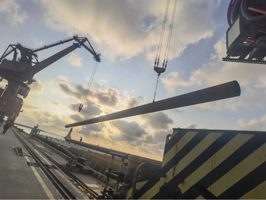 持續38℃+的高溫炙烤著黃海之濱,鹽城港射陽港區碼頭上熱浪翻騰,百米長的風電葉片在烈日下反射出白晃晃的亮光,門機駕駛室溫度直逼40℃+。面對“烤”驗,港區生產組一線員工與時間賽跑、與高溫抗衡,用汗水保障著海上風電裝備供應鏈的暢通。