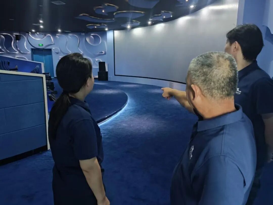 “您好,體驗(yàn)4D影院前請確認(rèn)安全帶扣緊,觀影中若有不適可隨時(shí)示意。”在“動(dòng)感海洋影院”入口,老員工成龍江正向新員工朱宇林、劉莉娟演示服務(wù)話術(shù)與應(yīng)急要點(diǎn)。老員工結(jié)合升級后板塊特色,從場館動(dòng)線引導(dǎo)、展品講解到4D設(shè)備、VR區(qū)安全操作,開展“一對一”帶教,傾囊相授服務(wù)經(jīng)驗(yàn)。“跟著成叔學(xué)習(xí),我不僅記熟了知識(shí)點(diǎn),還會(huì)按游客年齡調(diào)整講解方式,現(xiàn)在應(yīng)對提問不慌了?!毙聠T工劉莉娟自信說道。