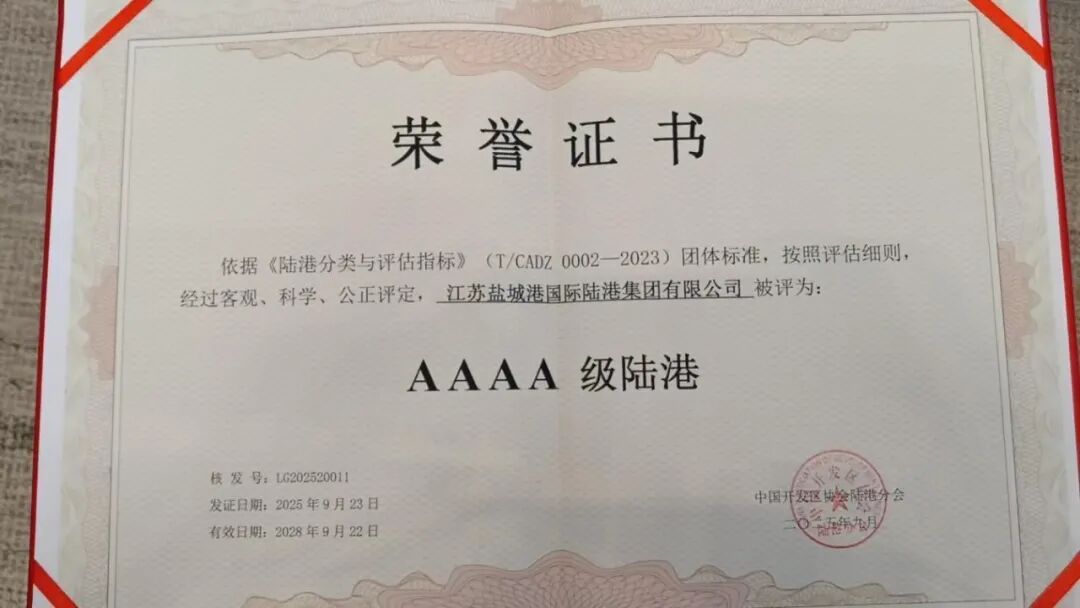 據悉,中國開發區協會開展的多式聯運企業等級評定工作,旨在樹立行業標桿,引導多式聯運行業規范、高效發展,其評定標準涵蓋基礎設施、運營管理、服務能力、信息化水平、安全生產及社會責任等多個維度,審核嚴格,權威性高。此次獲評,是對鹽城港國際陸港集團近年來深耕港口、鐵路、公路等多種運輸方式高效銜接,持續優化物流組織模式,積極服務地方及區域經濟發展的充分肯定與高度認可。