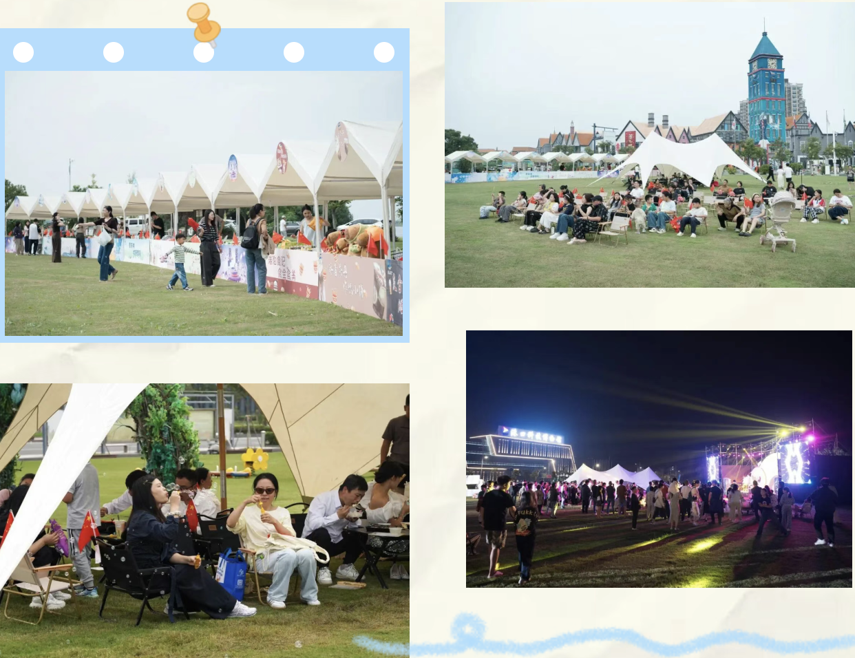 如果說非遺是文化的沉淀,那么音樂、露營與水上運動則為假日注入了青春活力。日月湖上,摩托艇、空中飛人等水上項目吸引年輕人逐浪而行;草坪露營區飄起燒烤香氣,伴隨著民謠樂隊的現場演唱,游客們圍坐暢談,盡享秋日浪漫。創意市集與文創展區不僅為游客提供了將好物帶回家的機會,更讓人們通過視覺、聽覺、味覺、觸覺等多維度的感受,領略港泊文旅的獨特韻味?!皼]想到非遺能這么潮!白天玩水上項目,晚上看火壺表演,假期安排得滿滿當當?!睆哪暇┳择{而來的游客表示。