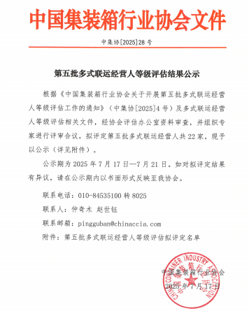 近日,中國集裝箱行業(yè)協(xié)會發(fā)布第五批多式聯(lián)運經(jīng)營人等級評估結(jié)果,歷經(jīng)資料審查、專家評審等多環(huán)節(jié)嚴(yán)格考核,江蘇鹽城港航運集團有限公司(以下簡稱“航運集團”)憑借卓越的綜合實力和服務(wù)水平,成功獲評“四星級多式聯(lián)運經(jīng)營人”稱號。