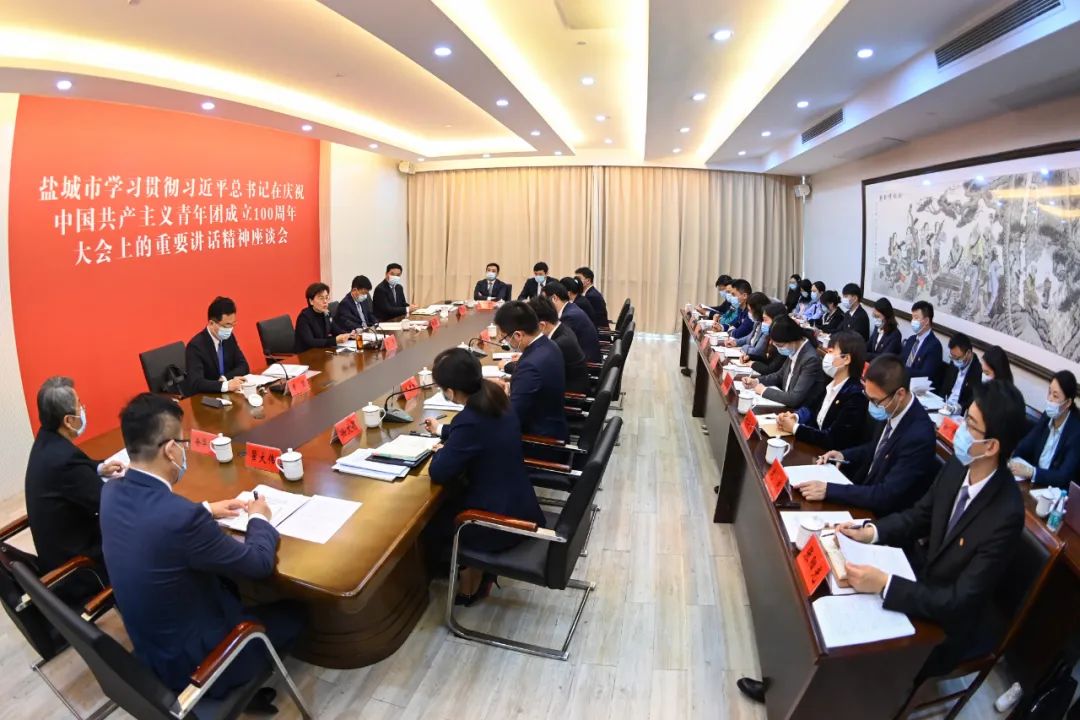 5月12日,鹽城市舉行學習貫徹習近平總書記在慶祝中國共產主義青年團成立100周年大會上的重要講話精神座談會。市委書記徐纓出席會議并講話。她強調,全市各級團組織和廣大青年要深入學習貫徹習近平總書記重要講話精神,堅持以習近平新時代中國特色社會主義思想為指導,按照省委書記吳政隆在座談會上的講話要求,牢記初心使命,堅定信仰信念,勇擔時代重任,積極踐行“請黨放心、強國有我”的青春誓言,堅定不移聽黨話、跟黨走,奮力奏響“強富美高”新鹽城現代化建設青春最強音,以實際行動迎接黨的二十大勝利召開。