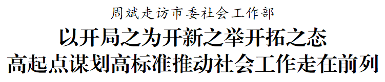 組建黨委社會工作部,是以習(xí)近平同志為核心的黨中央堅持和加強黨的全面領(lǐng)導(dǎo)、推進國家治理體系和治理能力現(xiàn)代化的重大舉措。市委堅決貫徹落實黨中央和省委決策部署,組建成立社會工作部。走訪中,周斌察看市委社會工作部辦公環(huán)境,與工作人員深入交流,了解大家崗位職責(zé)以及工作磨合情況,鼓勵要切實增強責(zé)任感、使命感、榮譽感,圍繞機構(gòu)職能履職盡責(zé),相互配合、促進融合、做好聯(lián)動,在新征程上展現(xiàn)新氣象、體現(xiàn)新?lián)?dāng)、作出新貢獻。