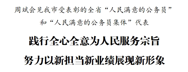 7月2日下午,市委書記周斌會見我市受表彰的第六屆全省“人民滿意的公務員”和“人民滿意的公務員集體”代表,代表市委、市政府向他們表示祝賀,并向奮戰在全市各條戰線上的廣大公務員致以誠摯問候。