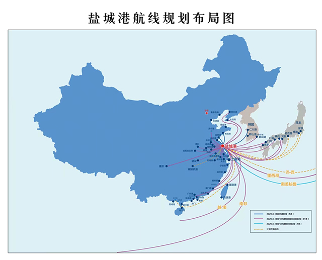 圍繞現代物流產業,推進集成式物流管理,主要從事集裝箱進出口貨物的攬貨、報關報檢、裝卸、運輸、訂艙、倉儲等業務。2022年實現集裝箱吞吐量55.1萬標箱,同比增長37.75%。2023年,完成集裝箱吞吐量66.1萬標箱,同比增長20%?,F有國際國內航線43條,包括汽車滾裝航線4條,至南美雜貨班輪1條,集裝箱班輪航線37條,包括對韓、日、東南亞航近洋線4條,對滬內支航線2條(每周六班),至青島、日照、連云港、營口、太倉、呂四的沿海內貿航線6條,至河南周口、蚌埠、鳳陽、重慶、宿遷、上海、淮安、徐州、宿遷、武漢、太倉、常州、城陵磯內河以及至市域阜寧、步鳳、亭湖、寶聯、建湖的內河航線26條,逐步構建“海上聯結南北、內陸貫通東西、向海融入中日韓”的雙循環新格局。