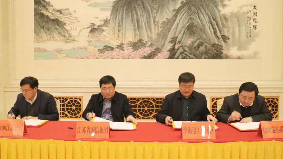 3月2日,濱海港工業園區、省國信集團、中海油江蘇天然氣公司、鹽城港集團在南京簽訂四方合作協議。市委常委、濱??h委書記、濱海港工業園區黨委書記孫軼出席簽約儀式。集團黨委書記、董事長、總經理周正雄與三家合作單位相關負責同志共同簽訂《合作協議》。
