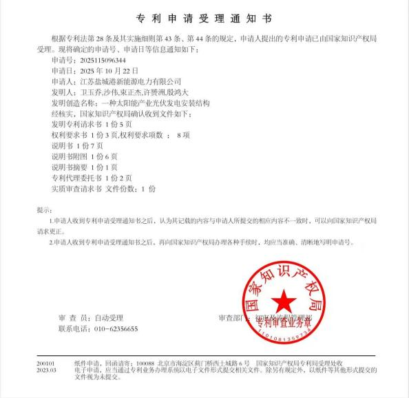近日,經相關部門嚴格評審,江蘇鹽城港新能源電力有限公司憑借在新能源電力領域的技術創新能力、良好的發展潛力,成功入選科技型中小企業信息庫。這標志著公司在科技創新與發展方面邁上了新臺階。